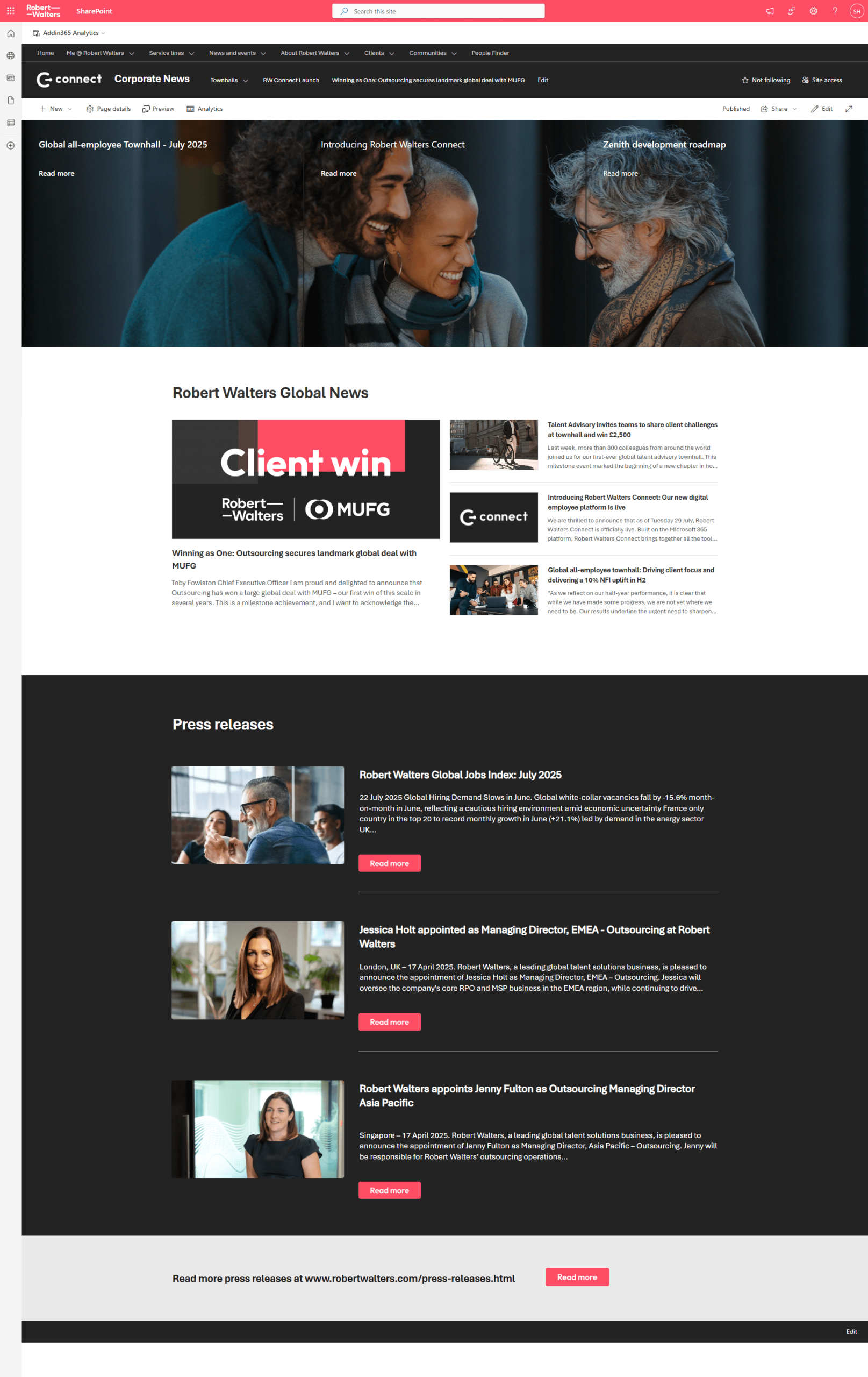 In 2024, Robert Walters, the worlds most trusted talent solutions partner, unified its three core brands and 3,300 employees into one. This bold move came with a new strategy: Winning as One. But while the business had evolved, its digital workplace hadn’t kept pace. Employees were navigating a maze of disconnected digital tools, siloed systems and inconsistent communication channels – which were hindering collaboration and reducing their productivity.